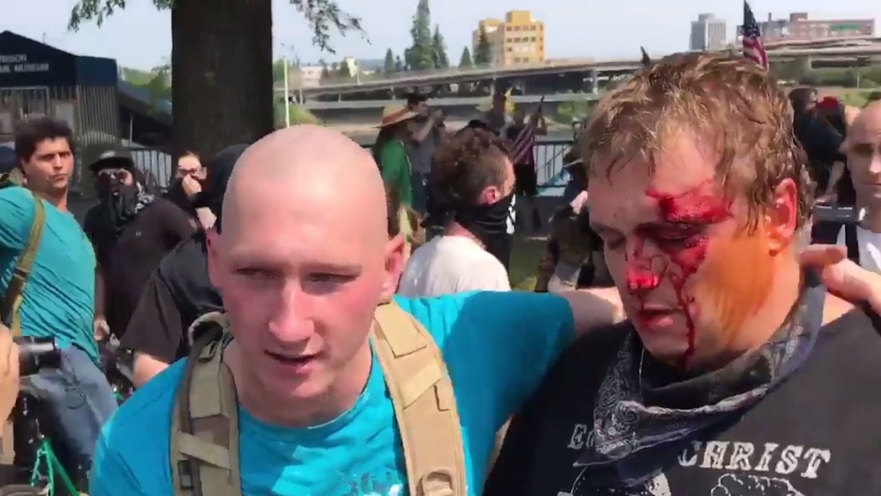 Squad of Antifascists and whatnot ran in, dude led with a drop kick before things got broken up. pic.twitter.com/nnzGAN0uRG