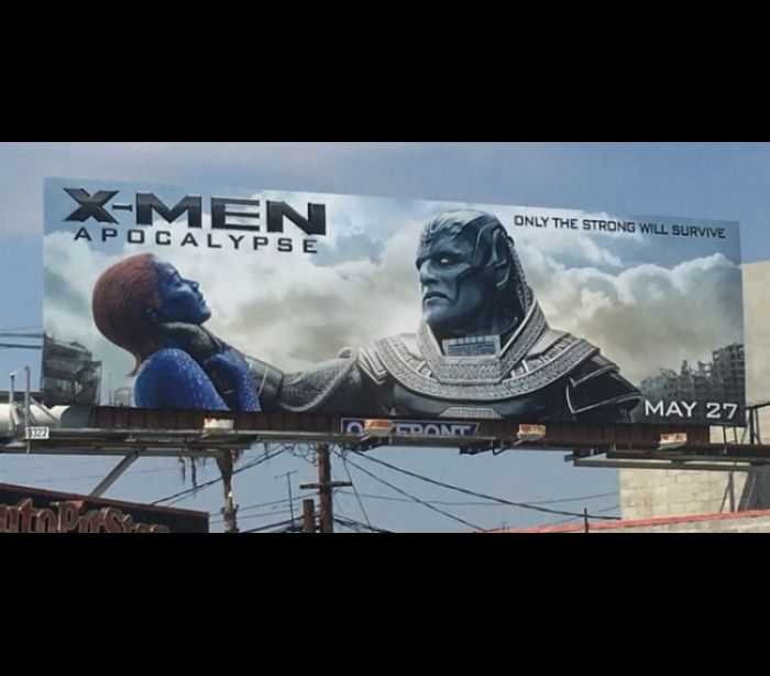 Apocalipse, como diz o nome, quer acabar com a humanidade e não com as mulheres e muitos menos com aquela mutante em especial. Ele é um mutante incrivelmente poderoso. Ora, nada como usarem Mística, ou Raven Darkholme, de aparência alienígena, cujo poder consiste na capacidade de se transfigurar em qualquer forma humana, para o cartaz.