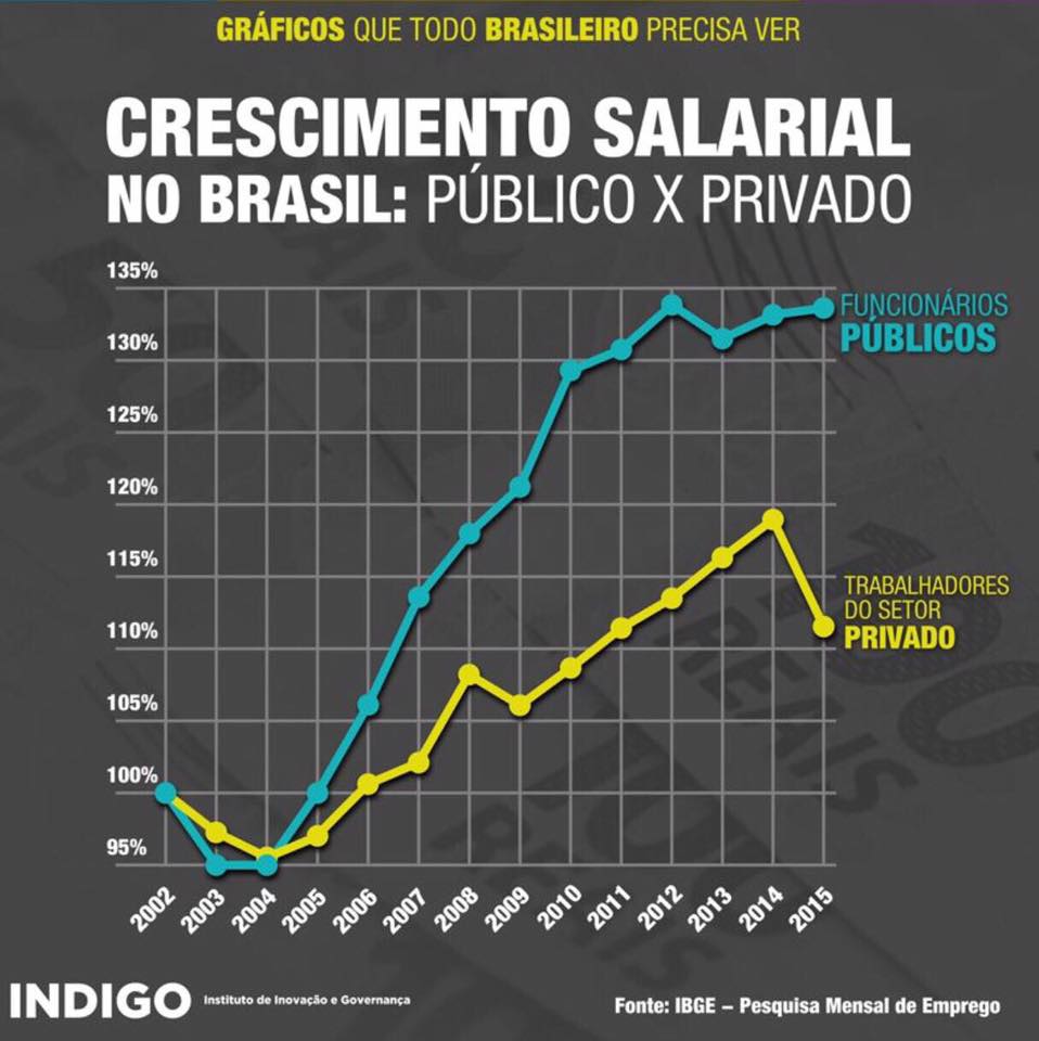 Esses gráficos são um tapa na cara de todo brasileiro trabalhador. Deixam claro qual o principal problema do nosso país: o excesso de estado, o peso do setor público, os privilégios que o governo distribui à custa de quem produz riqueza e empregos. Até quando?
