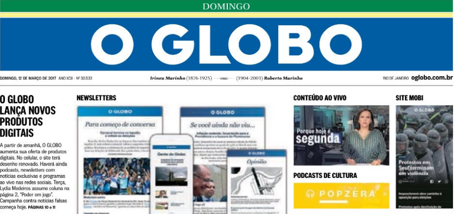 A Infoglobo, dona do jornal O GLOBO, resolveu fazer duas coisas diante da acelerada perda de credibilidade dos grandes veículos de imprensa no mundo de hoje: investir (mais ainda) em tecnologia e criar um canal exclusivo para “checagem de fatos” contra as tais “fake news”. Está em destaque na capa do jornal hoje: