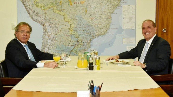 O vice, Hamilton Mourão, e o ministro do Gabinete de Segurança Institucional (GSI), Augusto Heleno, também foram convocados para ajudar na tarefa. No meio da tarde, a Casa Civil chegou a divulgar uma foto em que Onyx e Guedes aparecem almoçando no Palácio do Planalto.