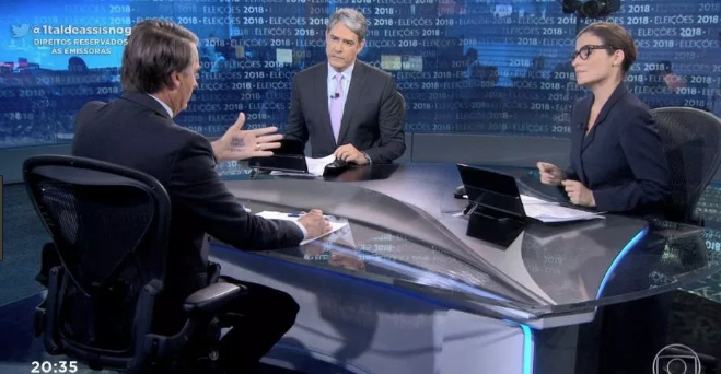 A reação nas redes sociais mostra como William Bonner e Renata Vasconcellos, apresentadores do Jornal Nacional, foram trucidados pelo capitão. Levantaram todas as bolas, encarando a caricatura que criaram, o espantalho, em vez de olhar para o homem de carne e osso que tem falado a língua do povo. Focar na questão da “desigualdade” salarial com base em sexo, na agenda LGBT, no resgate do regime militar ou na forma “bárbara” com a qual o candidato quer tratar marginais é a prova de como a imprensa se descolou da realidade.