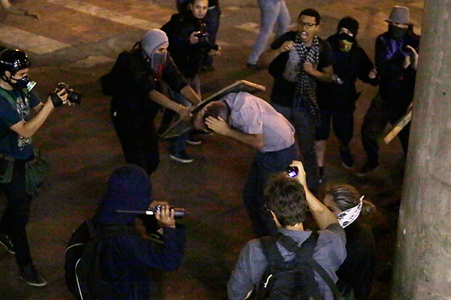 Pensei nisso ao ler duas colunas na Folha hoje: a de Ruy Castro e a de Reinaldo Azevedo. Ruy Castro fala com ironia da grande coragem dos black blocs, esses revolucionários mimados, rebeldes sem causa, que só agem em bloco que é para suplantar a covardia individual. Diz ele: