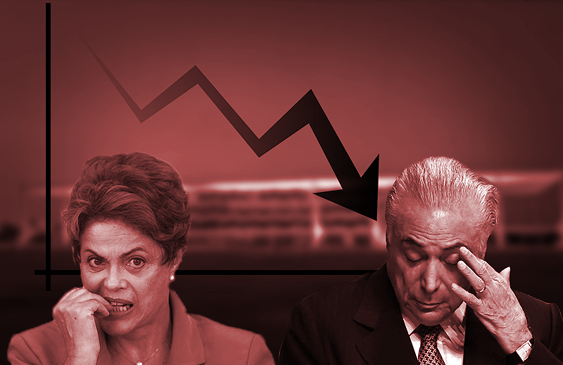 Repare que a grande queda ocorre em setembro de 2014, antes de Levy e na época em que a presidente em campanha garantia que não havia problemas fiscais no país. A queda se aprofunda durante 2015 e 2016. No final de 2016, já no governo Temer, ocorre uma pequena subida; em 2017 a trajetória de queda é retomada. Sei que esse negócio de causalidade é complicado, mas me parece bem difícil responsabilizar uma emenda aprovada no final de 2016 por um fenômeno que começa em 2014.