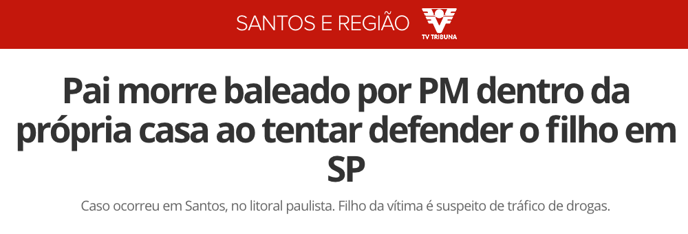 Mas o que o jornal resolve destacar disso tudo? Que um pai, atenção, um pai (qualquer pai?) morre baleado pela PM dentro da própria casa, ao defender seu filho! Ou seja, praticamente um herói assassinado friamente por um policial claramente fascista.