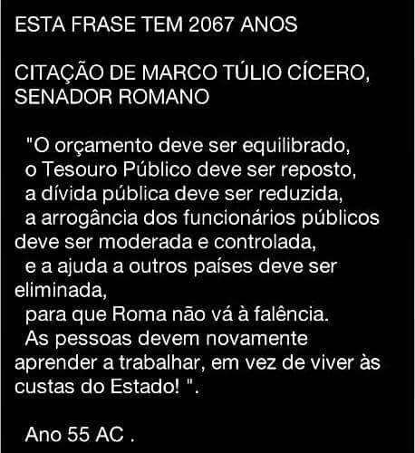 E não pense que essa lição vem de hoje, ou que a turma das tetas estatais nasceu ontem. Não, nada disso! O PT representa algo muito antigo, que vem de longa data. Vejam só o alerta feito na Roma Antiga, por exemplo: