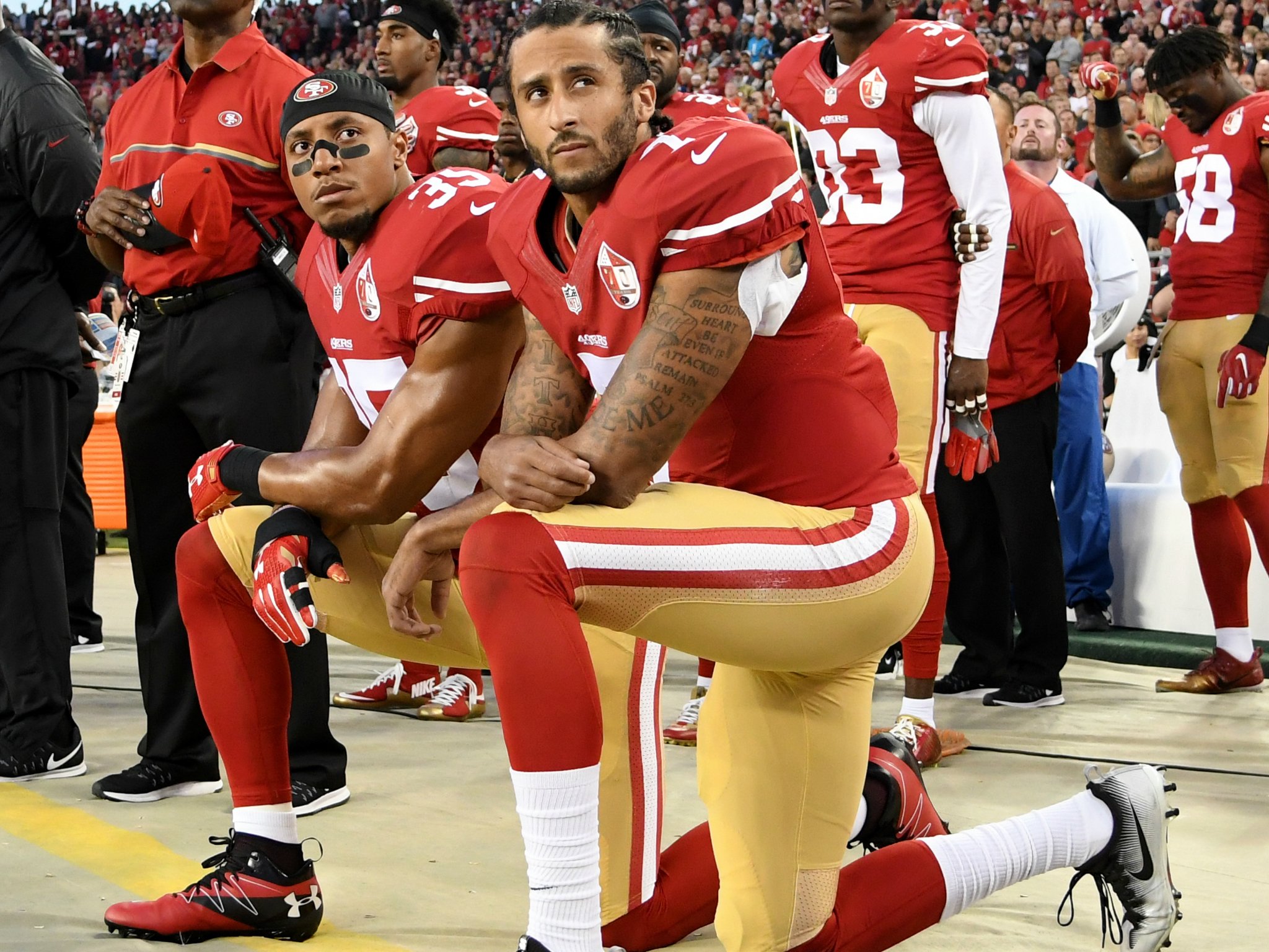 “Acredite em algo, mesmo que isso signifique sacrificar tudo”, diz o anúncio. No caso, o “algo” em que o jogador acredita é no ato de cuspir no hino e na bandeira nacionais, numa confusão infantil entre presidente e instituições. O “sacrificar” significa se ajoelhar em desrespeito aos tais símbolos, enquanto embolsa milhões por ano em sua conta bancária.