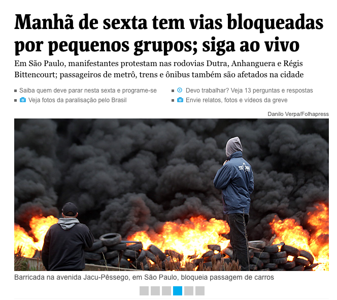- de um lado um grupelho disposto a usar barricadas com pneus em chamas para impedir a maioria de trabalhar, do outro a maioria que deseja justamente trabalhar, lembrando que há 13 milhões de desempregados;