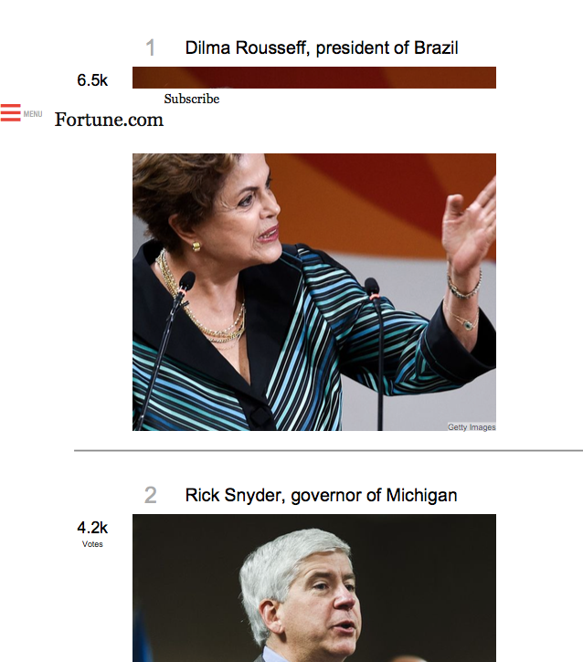 Um amigo meu me mandou uma enquete da Fortune para averiguar qual o pior governante do mundo na atualidade. Quando vi, na tarde desta quinta, Dilma estava em segundo lugar, perdendo feio para o primeiro. Fiz uma campanha no meu Facebook, e quero crer que ajudei muito a virar o jogo. Isso mesmo: é Dilma na cabeça! Em primeiríssimo lugar! Para um público basicamente americano… Vejam: