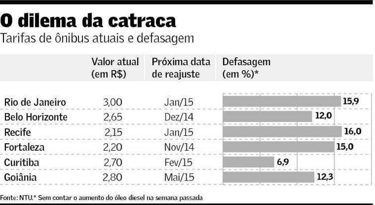 “Governos estaduais e municipais se veem agora diante do seguinte dilema: ou aumentam o valor da passagem, contrariando a voz das ruas, ou colocam mais dinheiro em subsídios, fragilizando as contas públicas”, resume o jornal. E continua: