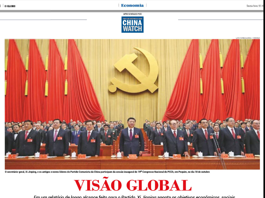 O jornal O Globo de hoje tem uma enorme reportagem sobre a China, em várias páginas. É o “China Watch”, que pretende entender melhor as mudanças na segunda maior economia do planeta. Até aí, tudo bem. Mas o que chama a atenção mesmo, ao menos a minha, é o tom bajulador a um regime opressor, ditatorial e centralizador, que não demonstra respeito algum por liberdades individuais, minorias ou pelo clima, bandeiras que os “progressistas” costumam adorar.