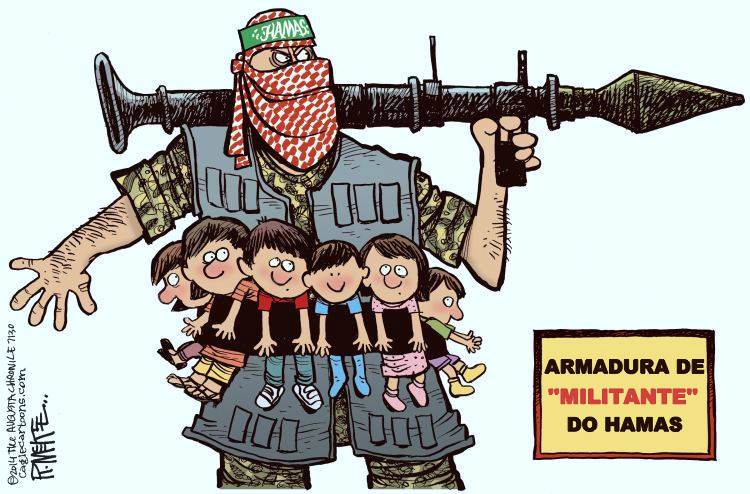 O porta-voz do Hamas foi à televisão se vangloriar de seus escudos humanos, mas ninguém emitiu uma palavra de repúdio a esta postura abjeta. Pelo contrário: alguns questionam se há mesmo o uso de crianças como escudo humano, e outros, que tentam ser menos patéticos um pouco, alegam que a culpa disso é de Israel, que teria deixado os povos “ocupados” sem alternativa (hum, quer dizer que para a turma dos “direitos humanos” usar crianças como escudo pode ser uma opção?).
