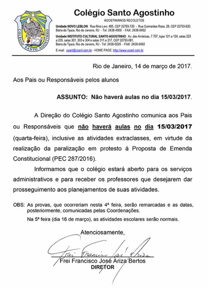 Alegria de gente séria dura muito pouco no Brasil. Eis que chegou a informação de adesão na greve da CUT do Colégio Santo Agostinho mesmo, o do Rio, aquele em que estudei por 11 anos da minha vida. E como se não bastasse a tortura pelo conteúdo absurdo, ainda conseguem fazer lambança na forma também, metendo uma “paralisação” com Z: