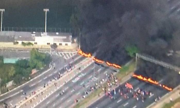 Segundo agentes da CET, grupos chegaram em veículos utilitários carregados de pneus pouco antes das 7h. Em minutos, fizeram bloqueios nos cruzamentos das vias, atearam fogo nos pneus nos dois sentidos, inclusive em ruas laterais.