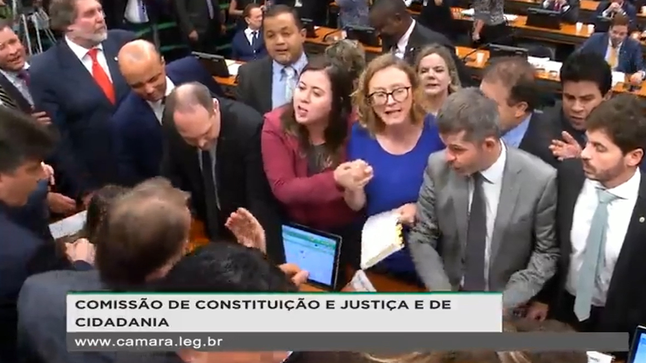 Felipe Moura Brasil: “Com as petistas Gleisi Hoffmann, Erika Kokay e Maria do Rosário, bancada da chupeta faz de tudo para tumultuar sessão da CCJ de apresentação do relatório pela admissibilidade da PEC da reforma da Previdência. Rosário fala até em “fraude eleitoral” em 2018.”