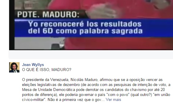 No entanto, mesmo diante de uma atitude positiva a ser reconhecida, nem tudo são flores; Jean Wyllys tem um limite em sua dose súbita de lucidez. Ele não quer que sejam negados “os avanços sociais conquistados pelo povo mais pobre desse país (a Venezuela) durante os governos de Chávez” e denuncia o absurdo de que a “situação dos pobres volta a piorar”, enquanto “a ‘boliburguesia’ (a nova burguesa amiga do governo bolivariano) não para de enriquecer”.