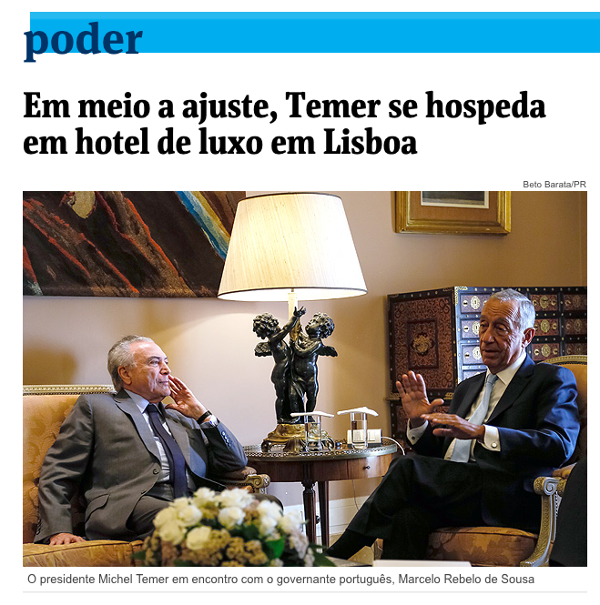 A atitude do jornal, no caso de Temer, foi proativa, com traços de jornalismo investigativo: “Perguntado pela Folha na terça-feira (29), o Palácio do Planalto ainda não informou o custo da estadia da comitiva presidencial e o motivo da parada em Portugal”. Mas e Dilma, não foi perguntada na ocasião?