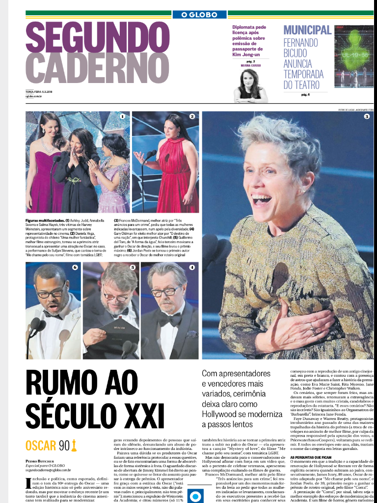 Os “progressistas” acham mesmo que representam a vanguarda, o futuro, o que há de mais moderninho. O Segundo Caderno do GLOBO, por exemplo, deu destaque positivo a essa cerimônia insuportável, justamente apontando para o “futuro”, segundo o jornal: