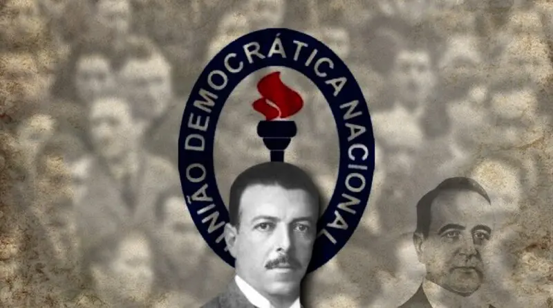 A União Democrática Nacional,[2] criada à sombra do Estado Novo de Getúlio Vargas (Carta Constitucional “polaca” de 1937), no ato de sua fundação em 07/04/45, reuniu diversos segmentos sociais da época. Coincidentemente sua fundação se deu num dia muito importante para o liberalismo brasileiro: 07 de abril. No mesmo dia, mas no ano de 1831, o Imperador D. Pedro I abdicaria do trono em favor do seu pequeno filho, Pedro de Alcântara João Carlos Leopoldo Salvador Bibiano Francisco Xavier de Paula Leocádio Miguel Gabriel Rafael Gonzaga, também conhecido como D. Pedro II, muito em razão de pressões advindas dos liberais.