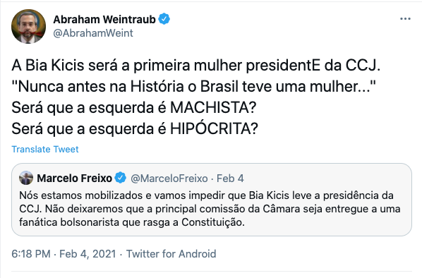 Foi o caso de Freixo, em campanha contra a deputada. O ex-ministro Abraham Weintraub foi direto ao ponto para apontar a hipocrisia do socialista: