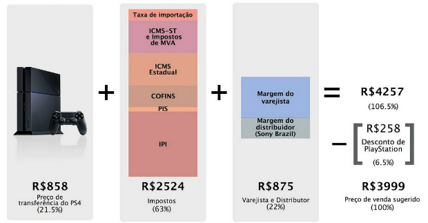 A Sony culpa os pesados impostos pelo preço absurdo. Uma imagem chegou a segregar cada item do preço:
