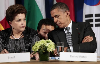 Obama dando uma espionada em DilmaA presidente Dilma deve estar inconsolável hoje. Acordou sabendo que todo aquele escarcéu feito como vítima da espionagem do malvado império americano será visto como patético hoje. A presidente se deu importância demais, pois a vitimização vende, e vende muito bem no Brasil.