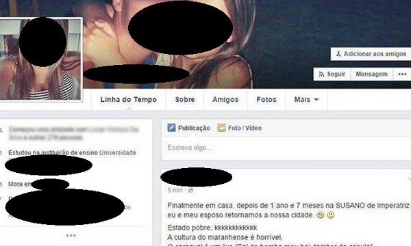 De acordo com o jornal “O Globo”, o Ministério Público do Maranhão abrirá investigação contra jovem gaúcha que declarou, em rede social, que estava muito feliz por não mais morar em Imperatriz-MA, por achar que o local é pobre, a cultura é horrível, as mulheres periguetes, os homens malandros e mais da metade das pessoas são semi-analfabetas. Podemos dizer sobre essa declaração que ela é infeliz, mas mais infeliz é o MP atuar como polícia de pensamento.