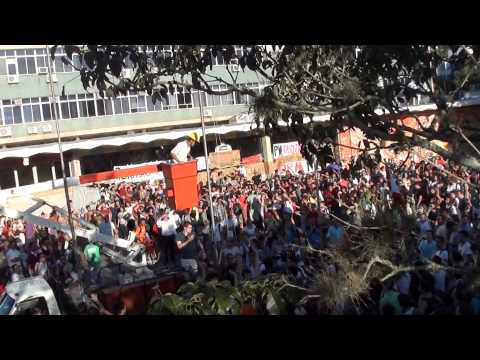 Nesse outro caso, alunos da UFSC, outro antro de marxistas, retiraram a bandeira vermelha e hastearam a bandeira do Brasil no mastro, e em seguida cantaram o hino nacional, enfrentando a cambada de comunistas que amam mais greves do que trabalho. Emocionante. Vejam: