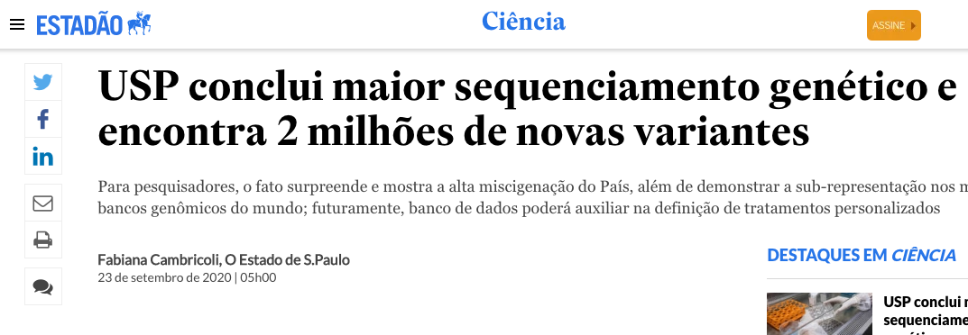 Enquanto isso, o Estadão reportou que uma pesquisa da USP com o maior sequenciamento genético já feito no país encontrou dois milhões de variantes, o que surpreendeu os cientistas.