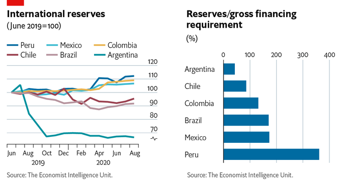 Em meio ao isolamento social mais prolongado do mundo, o PIB caiu 19,1% no 2º trimestre de 2020 em relação ao mesmo período do ano passado. E o país já perdeu também um terço de suas reservas internacionais: