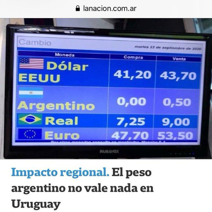 Como resultado da gestão esquerdista, o peso argentino caminha a passos largos para o destino do bolívar venezuelano, ou seja, o pó: