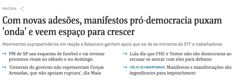 Quem faz isso quer o terror, simples assim. Não tem absolutamente nada de democrático nessa "manifestação". Não obstante, parte da mídia insiste nesse discurso, só para atacar o governo Bolsonaro. É o caso do Estadão, que parece ter virado uma espécie de Brasil247: