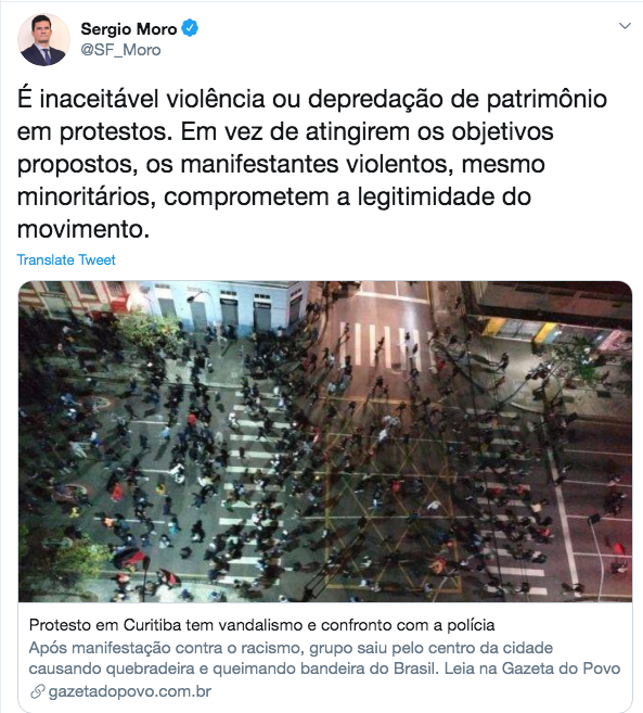 Manifestantes? Minoritários? Acorda, Moro! São marginais! E lideram essas "manifestações". Tucanou mesmo, hein! Que decepção...