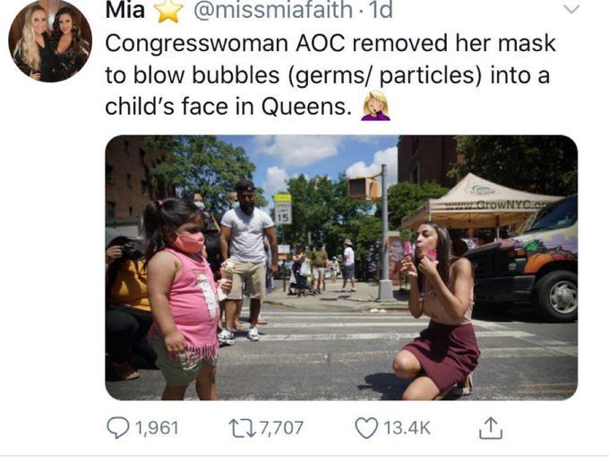 E não pensem que aqui nos Estados Unidos é muito diferente, pois não é! A mídia mainstream faz campanha contra Trump desde o primeiro dia, e destila todo seu viés em cada "reportagem". Quando Mike Pence apareceu, sozinho, sem máscara, foi uma celeuma. Já Alexandra Ocasio-Cortez, a queridinha dos democratas, uma radical socialista, solta germes na cara de uma criança, isso é "fofo" ou deve ser ignorado. Não nas redes sociais, porém: