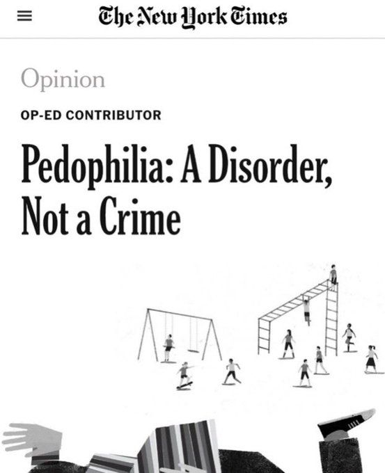 A esquerda "liberal" diz que é paranóia e teoria conspiratória de reacionário tudo aquilo que ignora, mas cada vez fica mais claro que os "progressistas" tentam relativizar e banalizar até mesmo a pedofilia. Já falei disso em meu Esquerda Caviar, e olha a chamada no NYT: