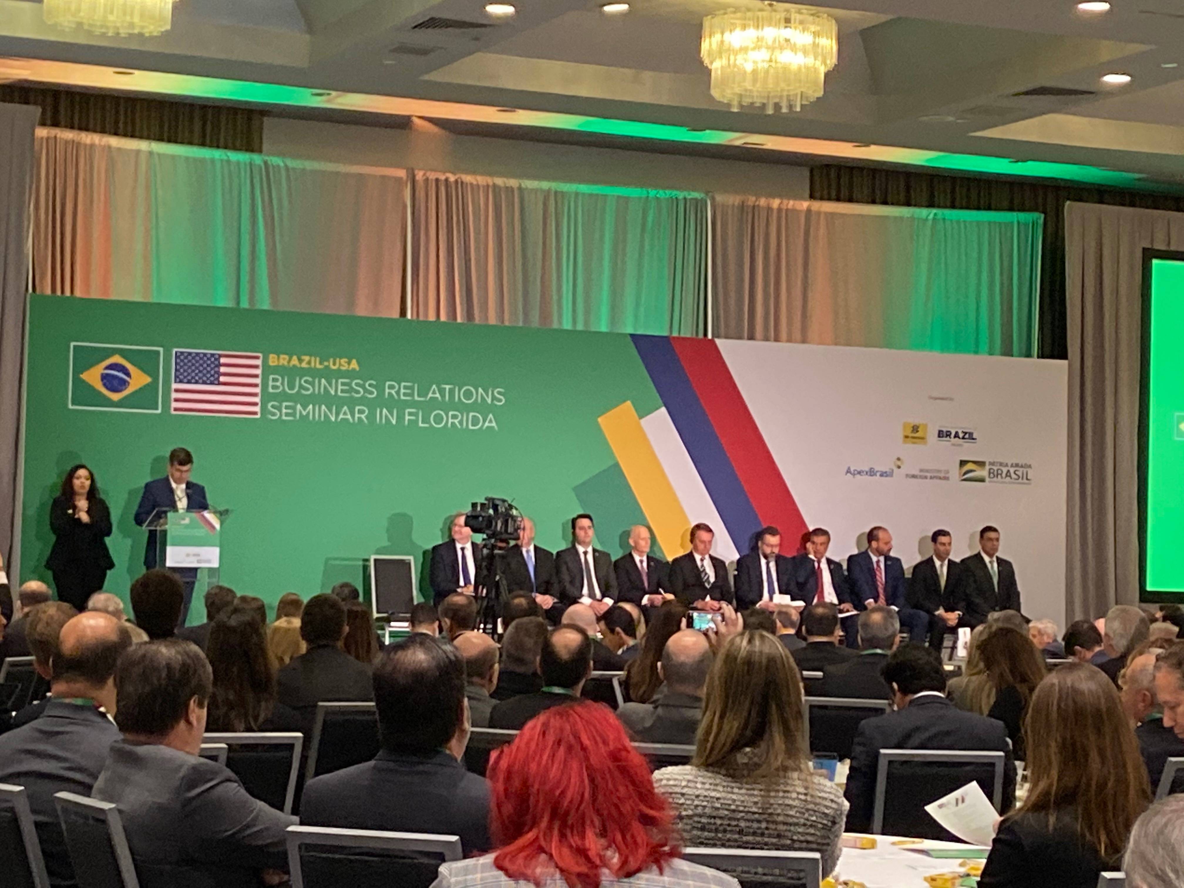 O ministro das Relações Exteriores Ernesto Araújo abriu o Brazil-USA Business Relations Seminar na Flórida, que conta com a presença do presidente Bolsonaro. Voltada para um público de 300 pessoas, basicamente empresários de vários setores da economia, o seminário tem como objetivo estreitar os laços entre os dois países, lembrando que os Estados Unidos já representam o segundo destino de nossas exportações.