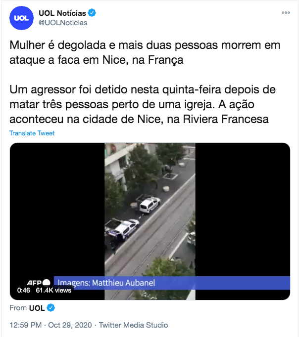 Qual o motivo? Simples: o terrorista era um muçulmano, como quase todos no mundo atual, e portanto não se encaixa na narrativa predominante que visa a demonizar o homem branco heterossexual do Ocidente. Nesse caso, os sujeitos desaparecem e os objetos inanimados entram em cena como autores do crime: