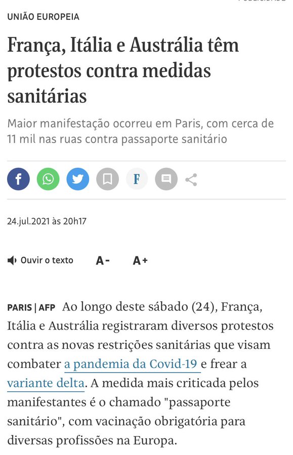 Enquanto isso, a liberdade ainda respira no Ocidente... indivíduos saem às ruas não para derrubar estátuas sobre o passado, mas para defender seus direitos individuais no presidente, condenando o tal passaporte sanitário:
