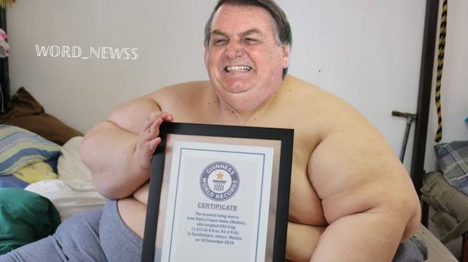 Diante do ridículo da coisa, só mesmo a ironia, como a página WorldNews fez: "Após Tomar 7.500 latas de leite condensado por dia, durante um ano, Bolsonaro entra para o Guinness".