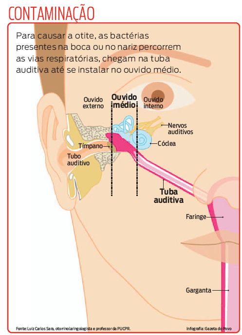 De acordo com o otorrinolaringologista Luiz Carlos Sara, do Hospital Cajuru e da Santa Casa de Misericórdia e professor da Pontifícia Universidade Católica do Paraná (PUCPR), os sintomas mais comuns são dores no ouvido e coceira. "O nariz não consegue fazer a limpeza adequada da região. Por isso o ideal para quem sofre de rinite ou sinusite é usar um lubrificante ou hidratante nasal para evitar que as bactérias cheguem ao ouvido", explica.