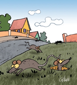 Na Rua Dias da Rocha Filho, entre a Atílio Bório e a Schiller, a quantidade de ratos é imensa. Na grama das calçadas, percebe-se buracos enormes por entra e sai desses nocivos roedores. Maria Ines Barbosa