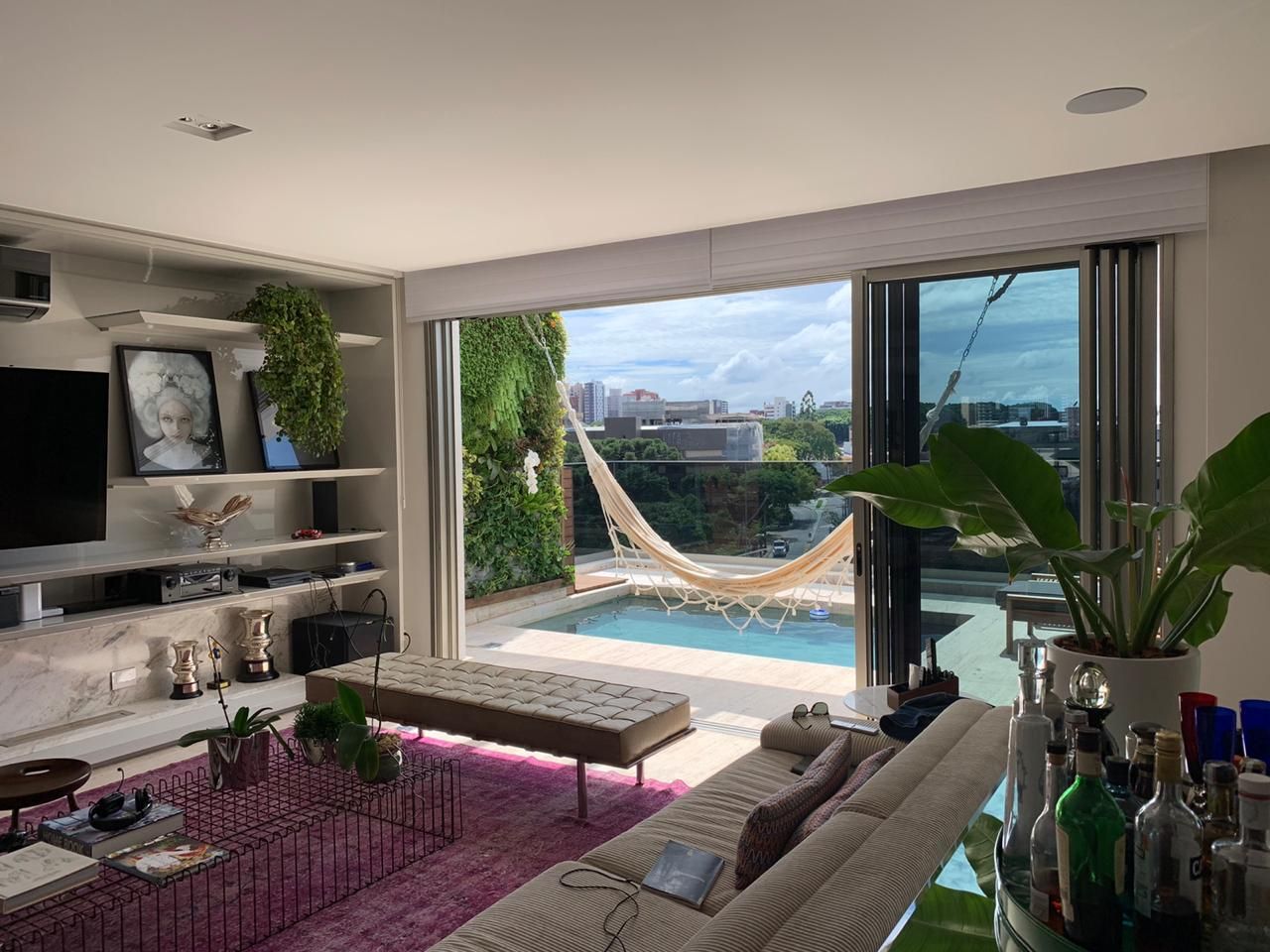 Ambiente integradosÁrvores frutíferas, churrasqueira, piscina e rede se destacam em área social de apartamento