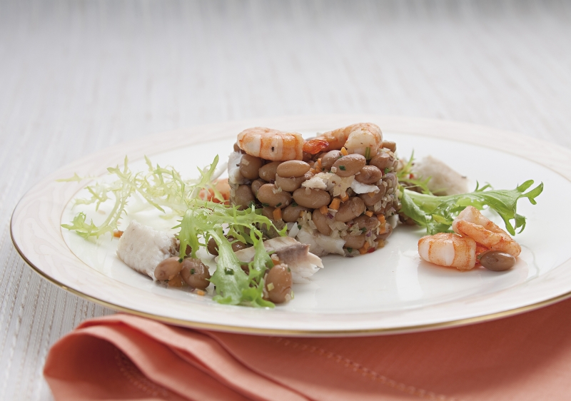 Cuscuz de feijão com tilápia e camarão