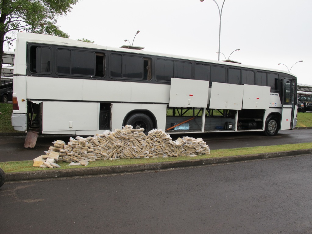 Policiais encontraram pelo menos 328 quilos de maconha que estavam escondidos em um ônibus. A apreensão, divulgada na tarde desta segunda-feira (27), ocorreu em Santa Terezinha do Itaipu, no Oeste do estado, no último domingo (26).