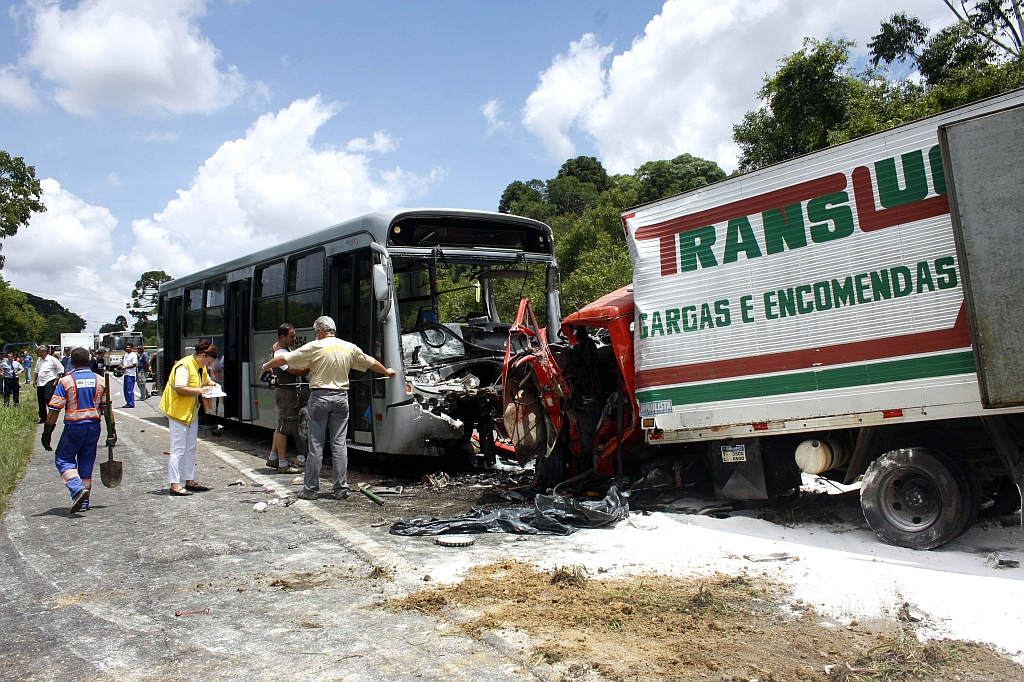 Duas pessoas morreram e 34 ficaram feridas em um acidente envolvendo um ônibus e um caminhão, no trecho da BR-476 (Rodovia do Xisto) entre a Lapa e Araucária, na manhã de ontem. Os veículos bateram de frente, pouco antes das 10h30, no quilômetro 166, no município de Contenda, na região metropolitana de Curitiba.