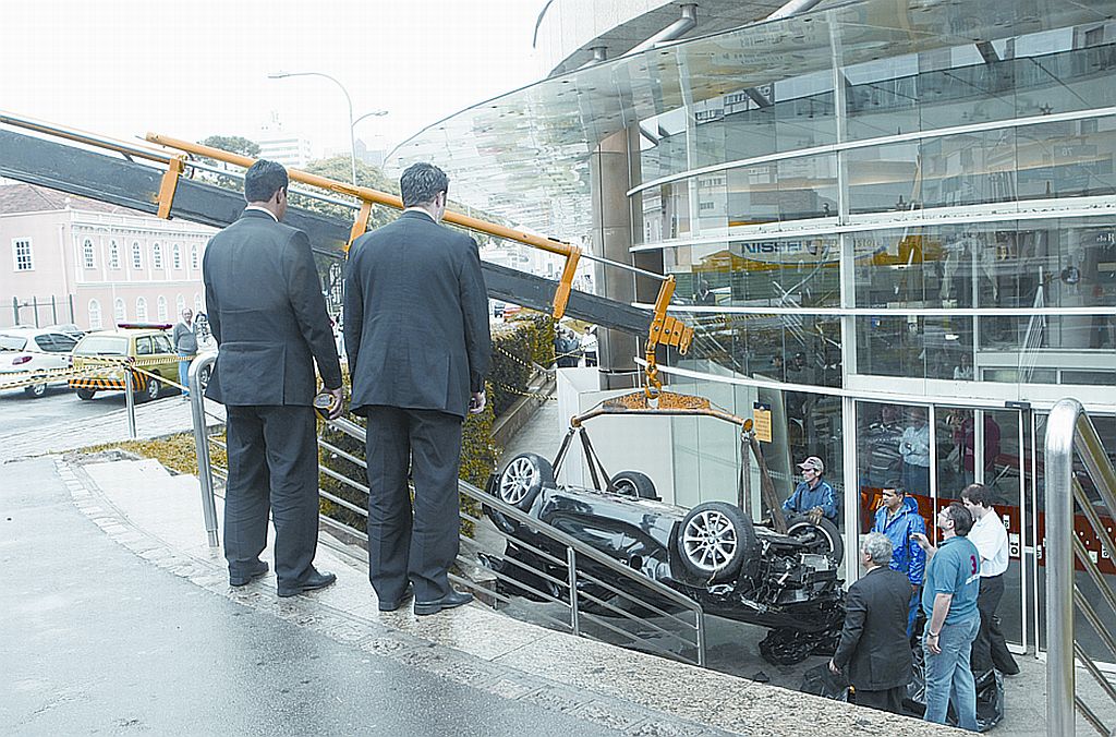Um veículo BMW foi protagonista de uma cena cinematográfica por volta das 5 horas de sábado, em Curitiba. Após colidir com um Honda Civic, na esquina das ruas Sete de Setembro e Marechal Floriano Peixoto, o motorista perdeu o controle do carro e capotou na entrada do Shopping Estação. O carro foi guinchado pela Diretoria de Trânsito. Ninguém ficou ferido.
