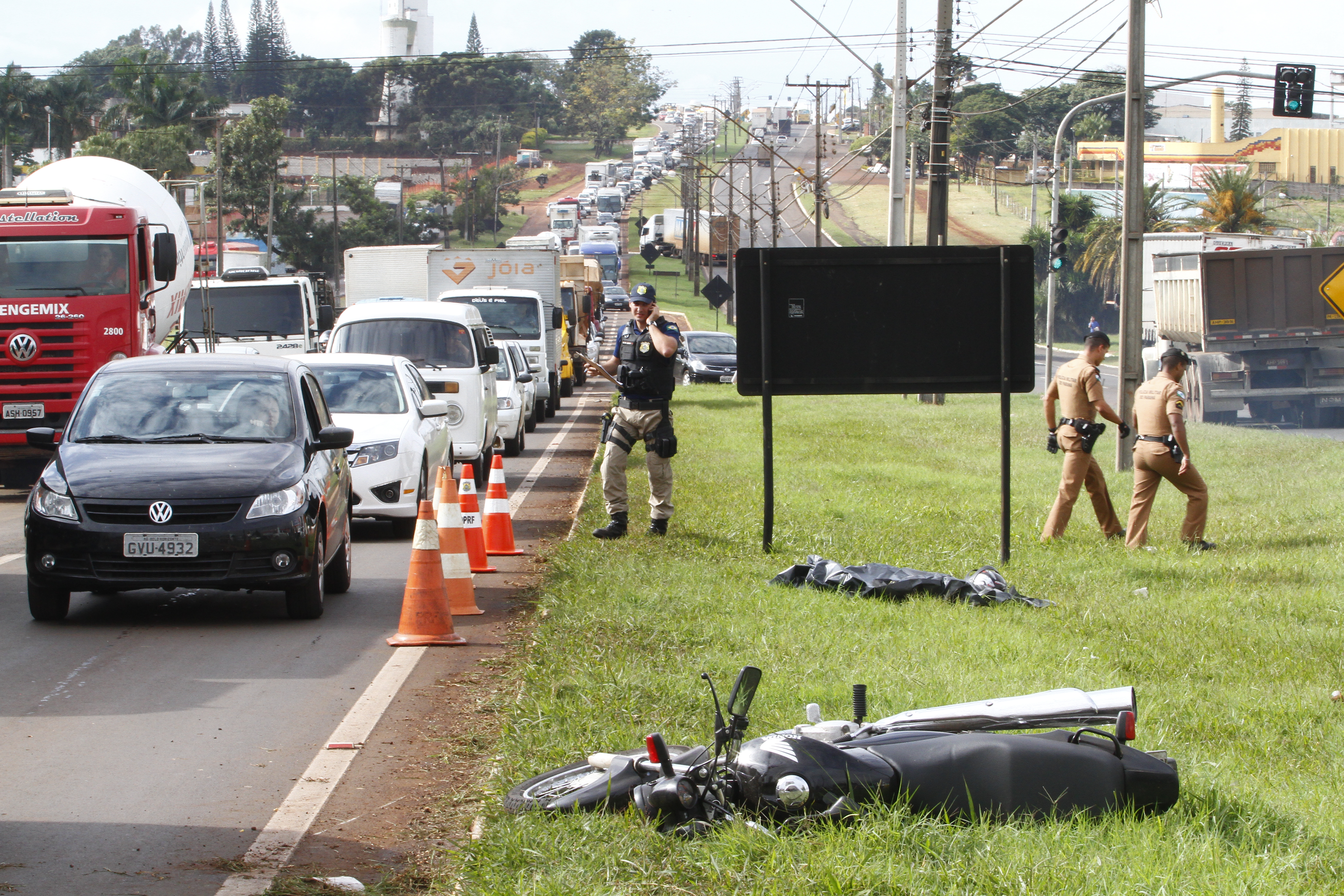 Segundo a Polícia Rodoviária Federal (PRF), o acidente aconteceu perto da Companhia Cacique, no sentido a Cambé. A motocicleta seguia pela faixa da esquerda quando o caminhão, que ia no mesmo sentido, mudou da pista da direita para a da esquerda. Assustado com a fechada, o motociclista perdeu o controle e bateu contra o meio-fio.
