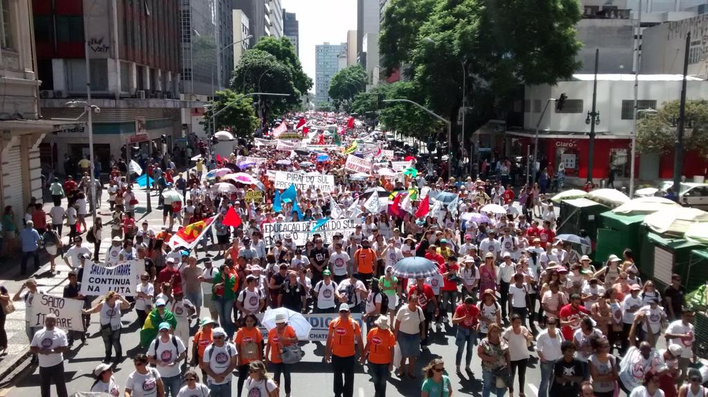 Professores e servidores saíram das praças Rui Barbosa e Santos Andrade para ir ao Centro Cívico. Docentes e governo se reúnem pela terceira vez para negociar fim da greve
