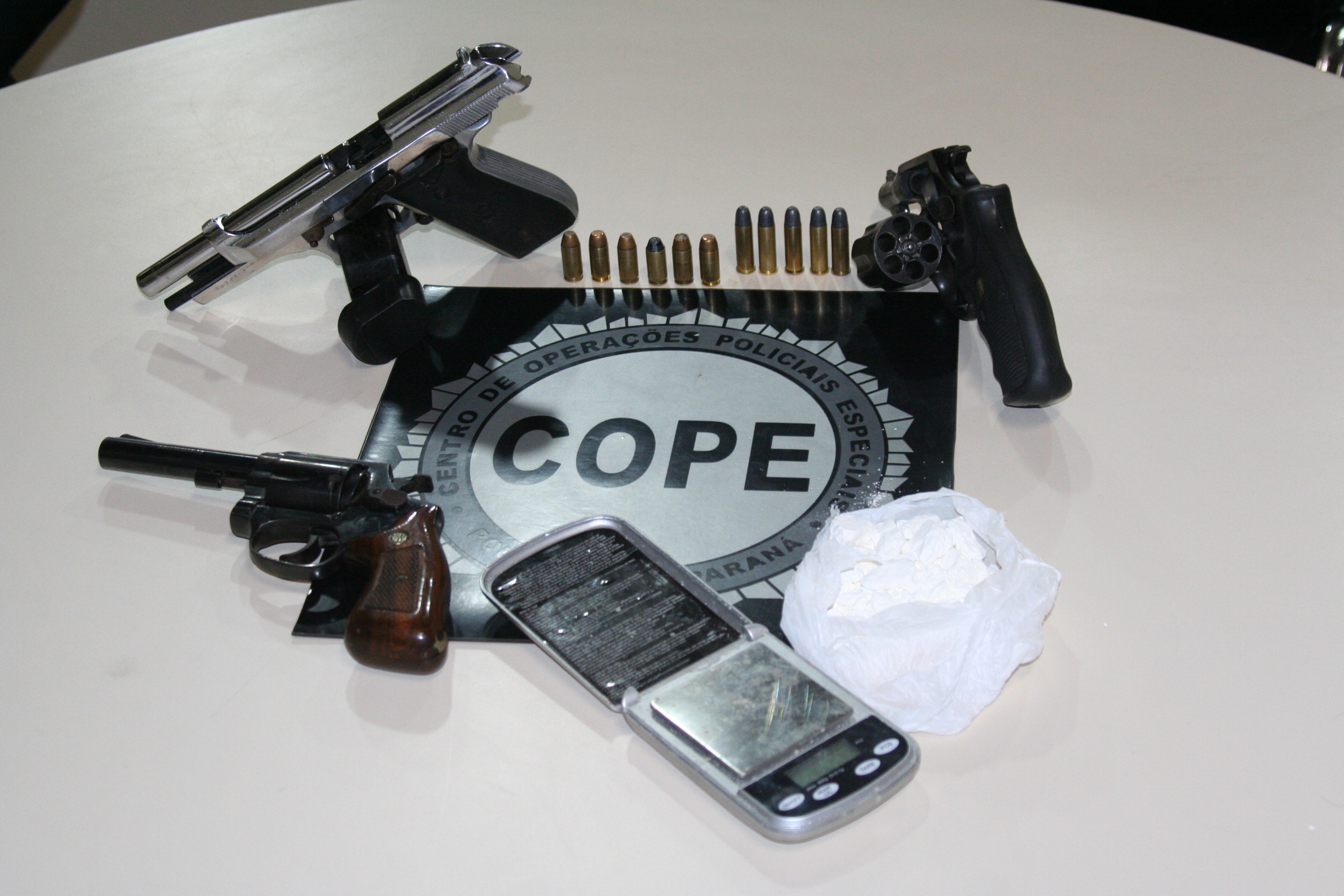 O Centro de Operações Policiais Especiais (Cope) apresentou, nesta sexta-feira (10), em Curitiba, um homem de 22 anos, preso com dois revólveres com numeração adulterada e com uma pistola de uso restrito da polícia. Há suspeitas de que o acusado alugava as armas para criminosos. O delegado Amarildo Antunes apontou que existem indícios de que os armamentos tenham sido usados em assaltos e homicídios.