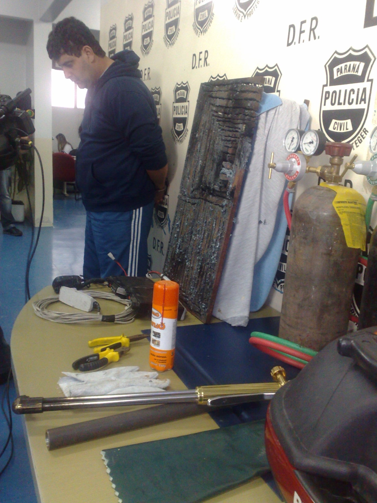 Na casa do suspeito, foram encontrados dois maçaricos com cilindros e materiais, como luvas e óculos de proteção. "O mais impressionante é que ele possuía uma chapa de metal, onde treinava com o maçarico. Ou seja, ele tinha total aptidão e treinamento com o equipamento", observou o delegado.